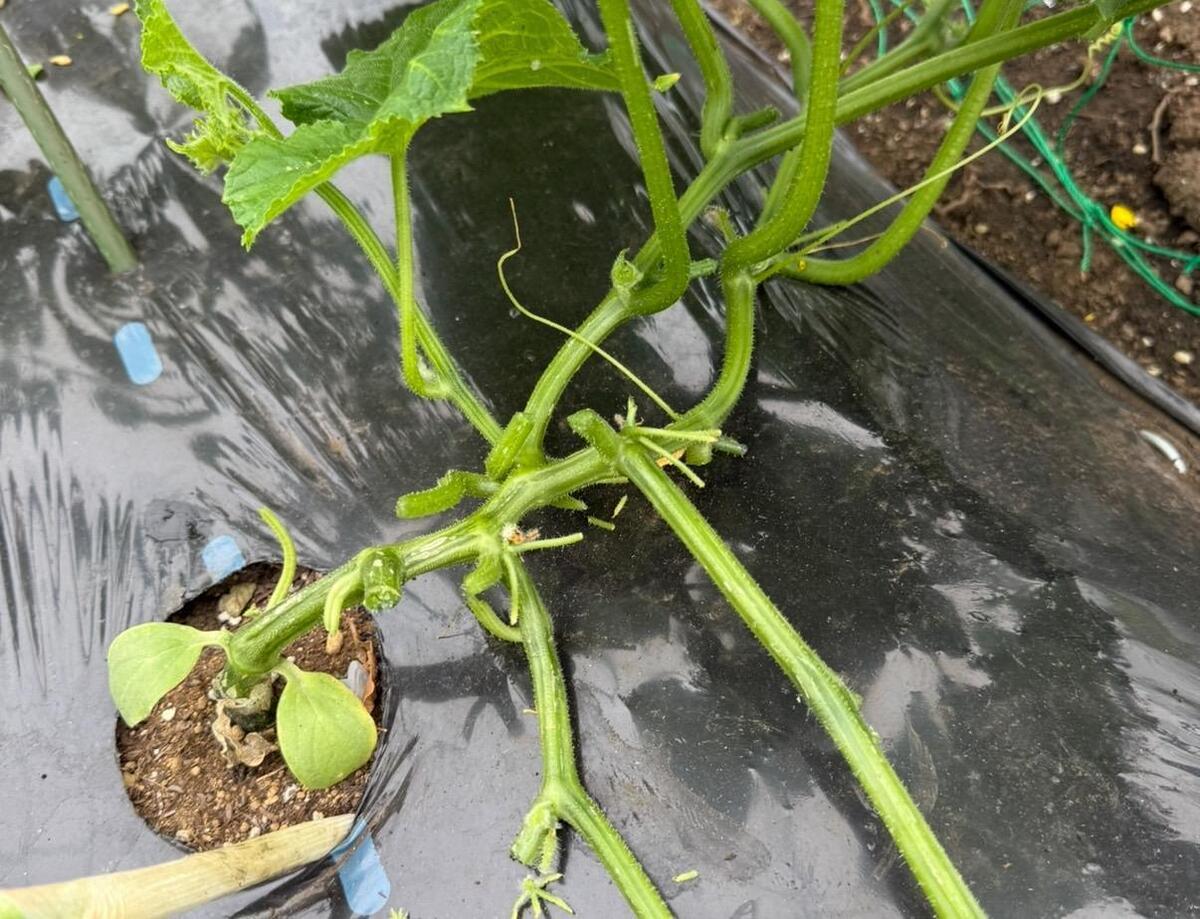 カットされた部分は、根元に近いわき芽を(小ヅル)を放置すると枝元の風通しが悪くなり病気になるそうなので、少し成長してしまった後に取り除きました。