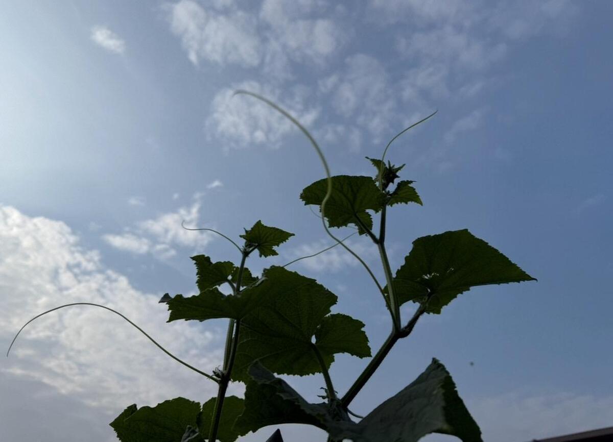 初夏にグングン成長するキュウリ。毎日様子が違います。見ているだけでエネルギーを貰っています。