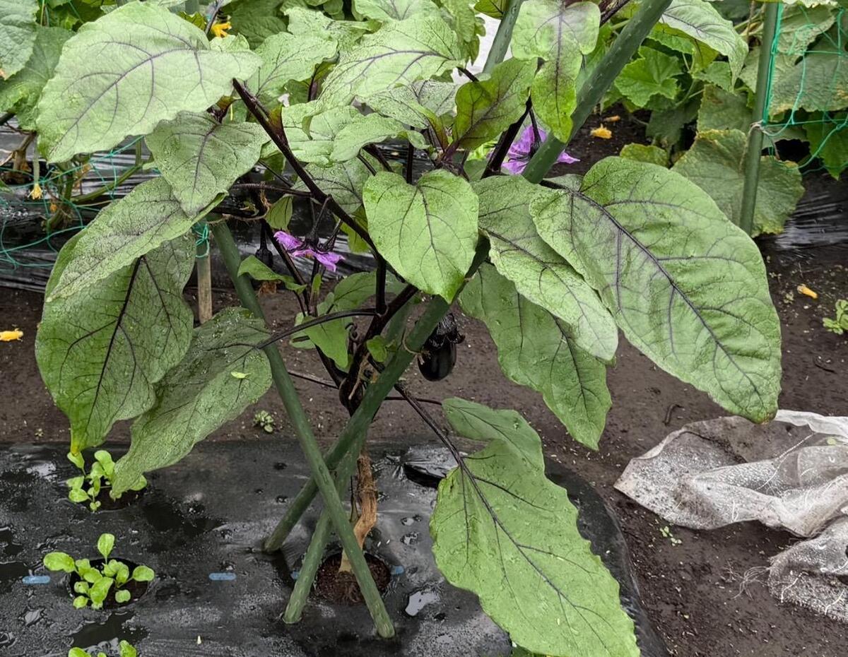 そして、このナスの株もキュウリ同様、真夏には食べきれないほどの実をつけてくれることに。どれも実が詰まった立派なナスばかりでした。この支柱がしっかりと支えてくれたおかげで大豊作となりました!