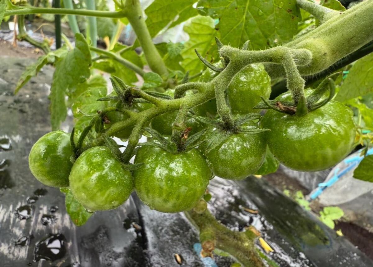 ズラッと並んで実をつけたプチトマト。鈴なり状態に「すごい!」思わず声をあげて喜んでしまいました。